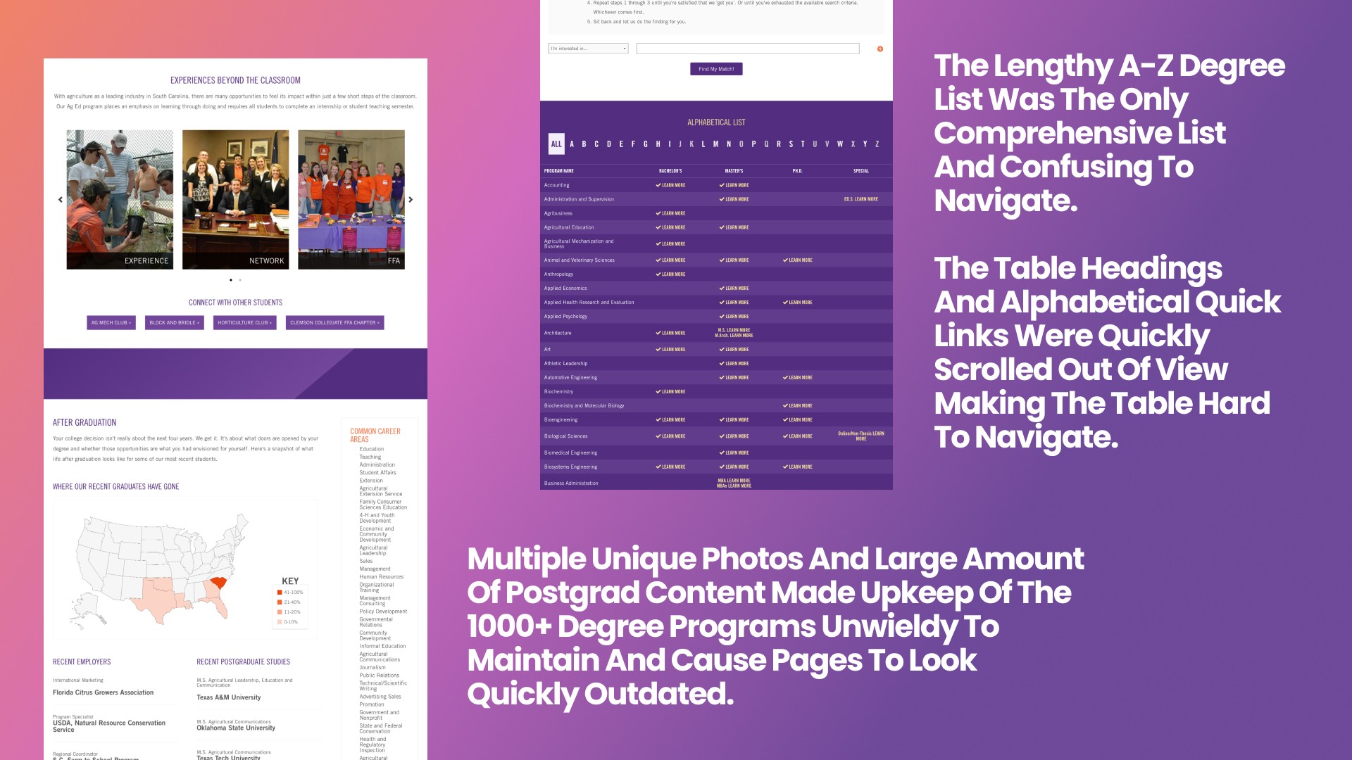 A lack of ease in navigating between the degrees site and the rest of Clemson.edu