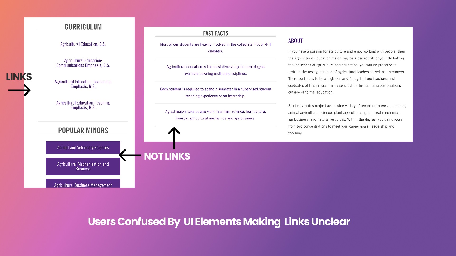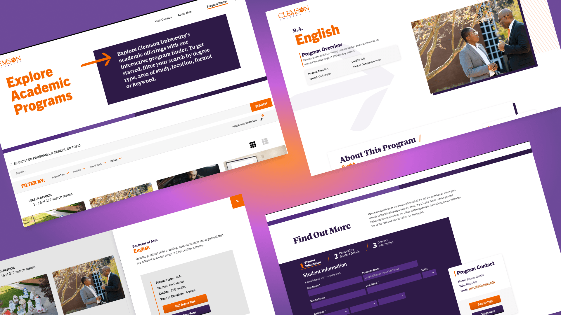 I conducted user testing interviews with three high-school seniors and had them perform basic tasks on the previous iteration of degrees.clemson.edu.