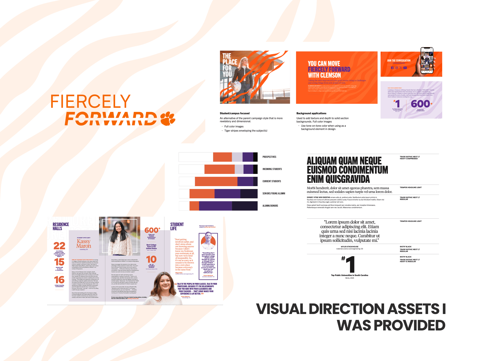 From there we decided to focus on the main gateway pages into Clemson.edu and redesign their primary mastheads. After researching the existing campaign assets and prototyping some design ideas in Figma I landed on a basic design to execute.